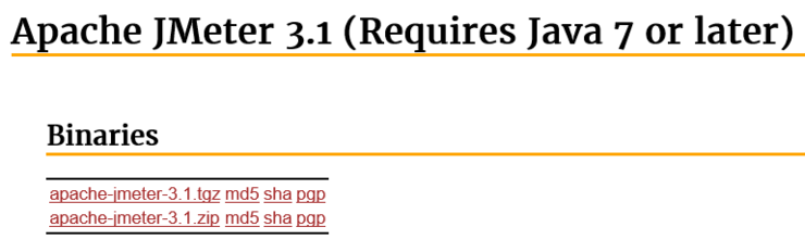 해당 URL에 접속하여 현재 최신 버전인 JMeter 3.1을 다운받습니다.