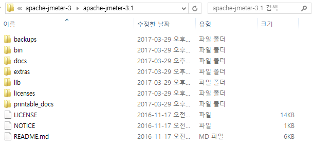 apache-jmeter3.1.tgz을 다운 받았습니다. (apache-jmeter-3.1.gz)