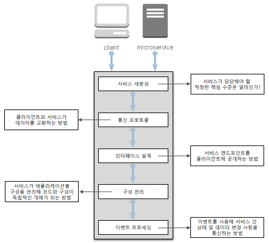 마이크로서비스를 설계할 때 서비스가 어떻게 소비되고 통신되는지 생각해봐야 합니다.
