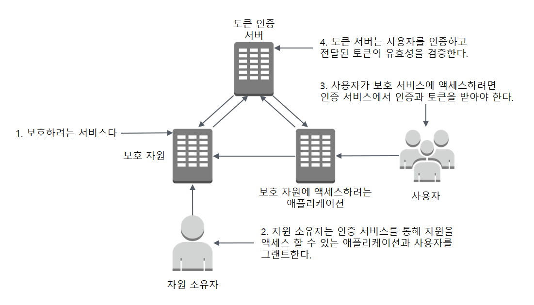 토큰 기반의 보안 체계를 사용하면 클라이언트의 자격 증명을 전달하지 않고 서비스 인증과 인가를 구현할 수 있습니다.