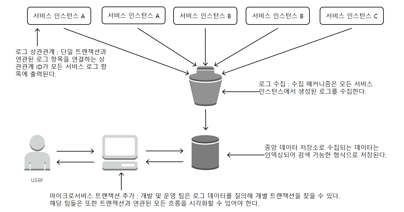 [그림 6] 마이크로서비스 로깅 및 추적 패턴
