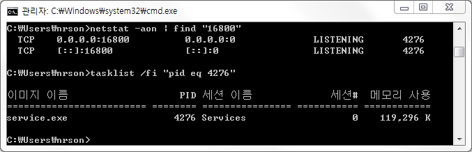 - port를 점유하고 있는 Process ID를 확인할 수 있다.