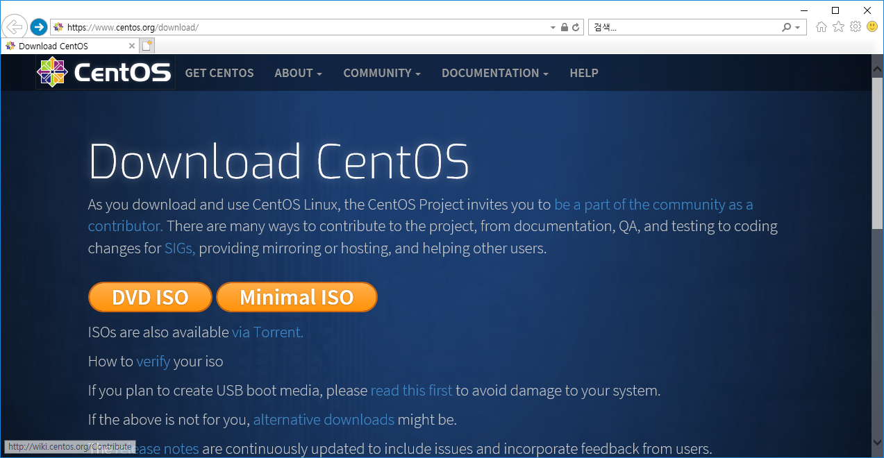 다음으로 CentOS 설치를 위한 ISO 파일을 다운로드 받습니다.