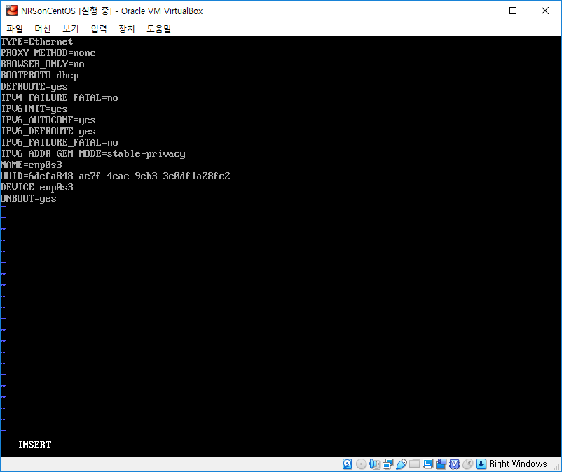 > vi /etc/sysconfig/network-scripts/ifcfg-enp0s3