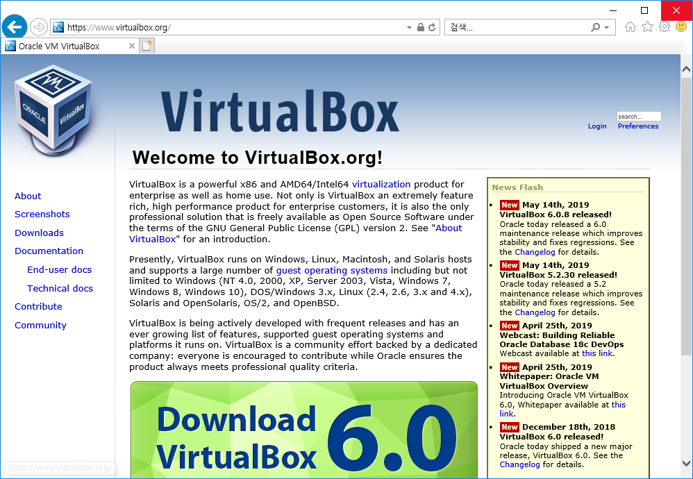 Virrual Box는 다음에서 다운로드 받을 수 있습니다.