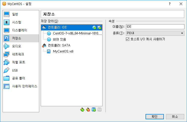 설정 -> 저장소에서 광학용 디스크 이미지를 클릭하고 앞서 다운로드 받은 CentOS iso 파일을 추가합니다.