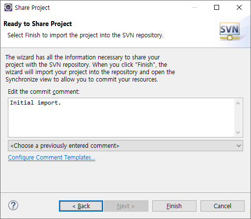 Subclipse를 install하고 Eclipse를 Restart하면 SVN을 사용할 수 있다.
