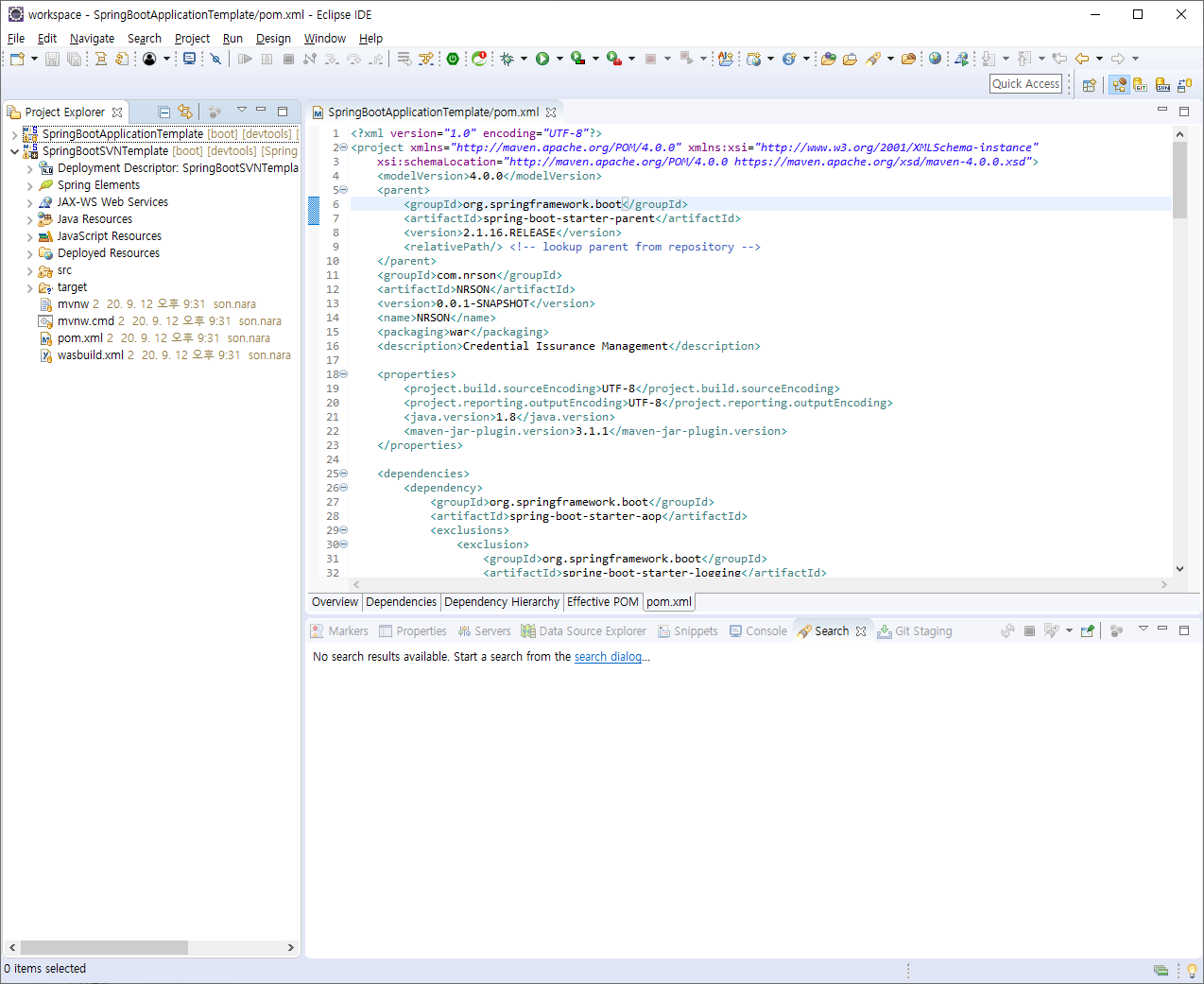 다음과 같이 SpringBootSVNTemplate이라는 프로젝트가 생성된것을 확인할 수 있다.