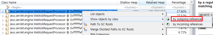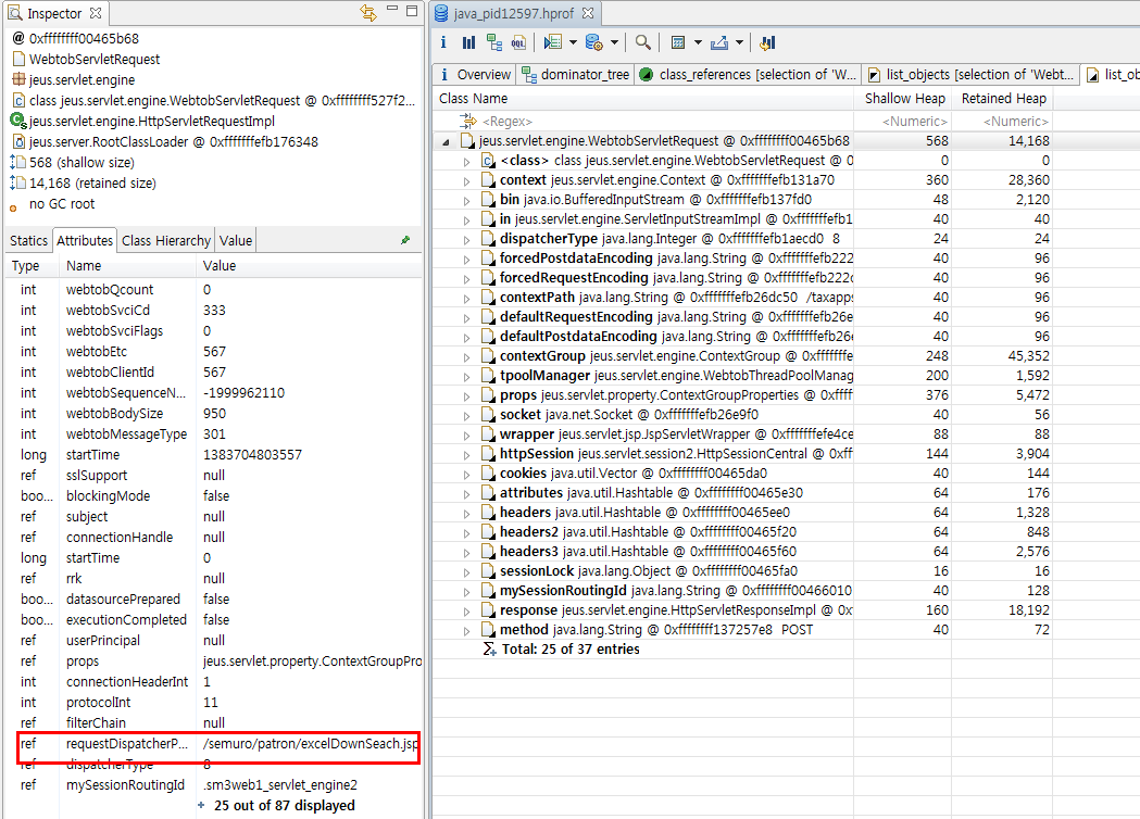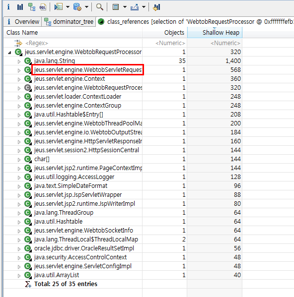 1) jeus.servlet.engine.WebtobRequestProcessor 가 참조하고 있는 object들을 확인