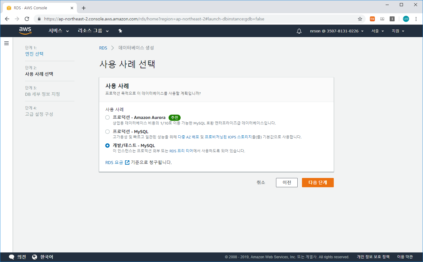 1) Amazon RDS 생성