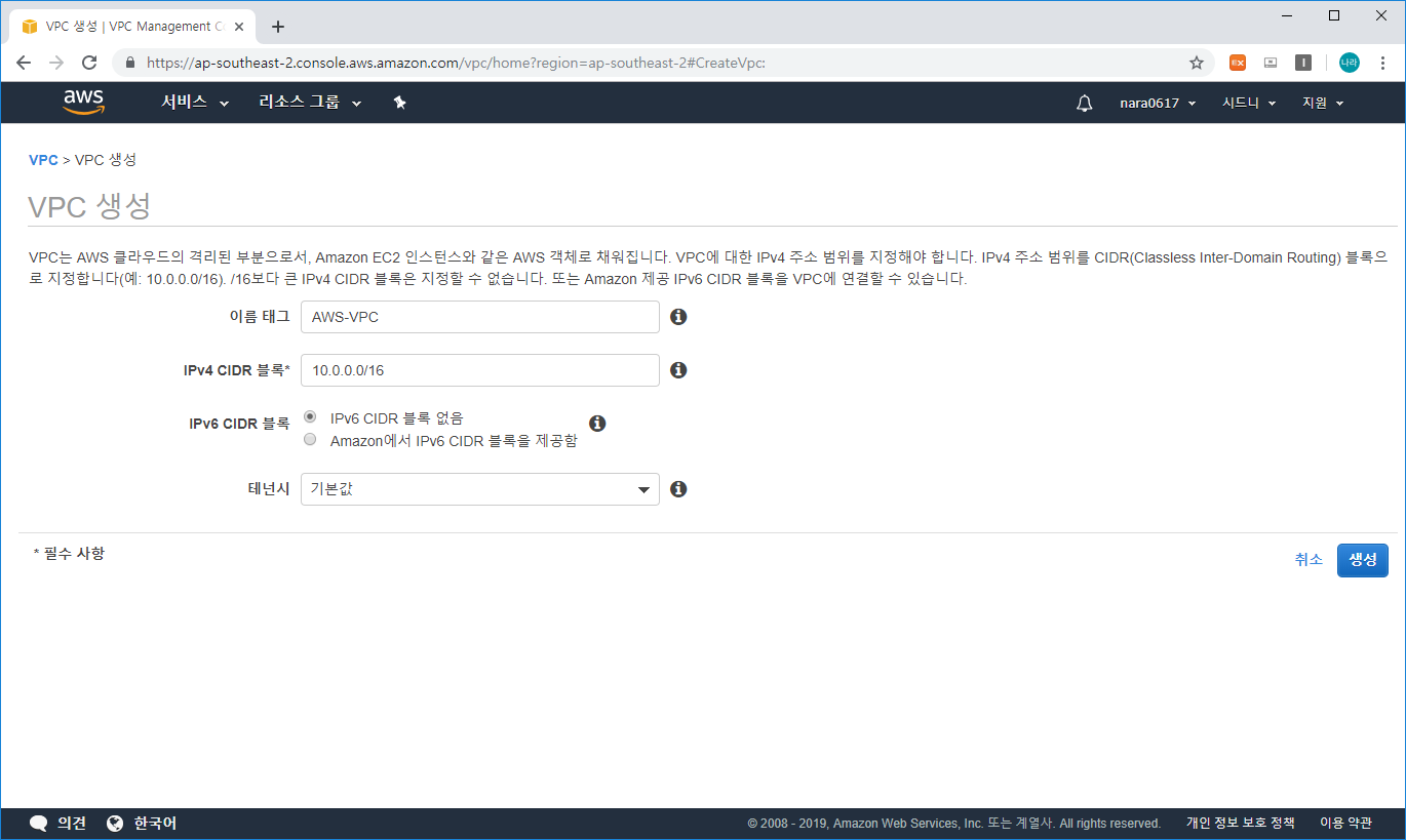 1. VPC를 생성한다.