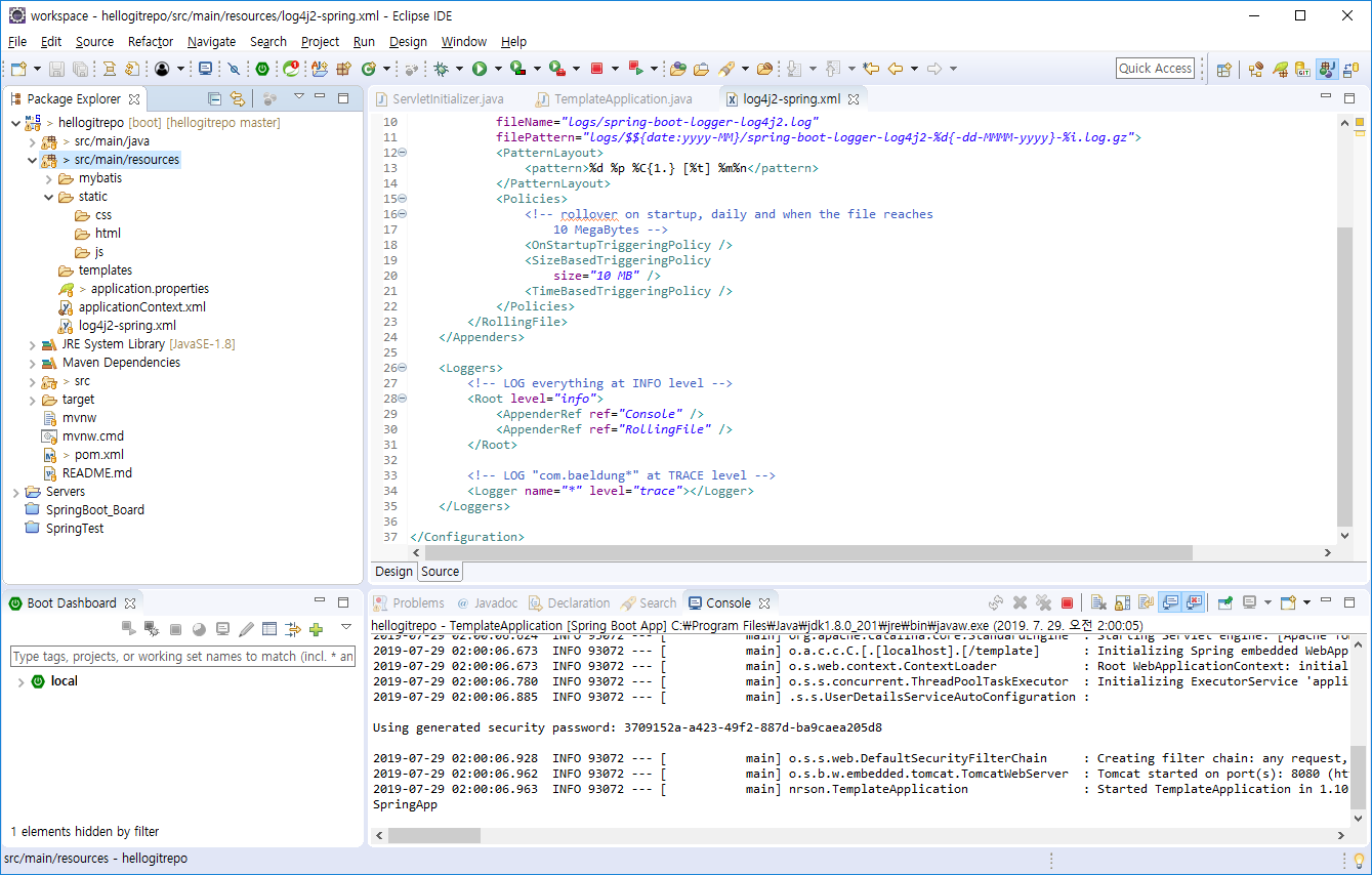 2019-07-29 02:00:06.023 INFO 93072 --- [ main] nrson.TemplateApplication : Starting TemplateApplication on DESKTOP-SDT0PVK with PID 93072 (C:\Users\user\git\hellogitrepo\target\classes started by nrson in C:\Users\user\git\hellogitrepo)