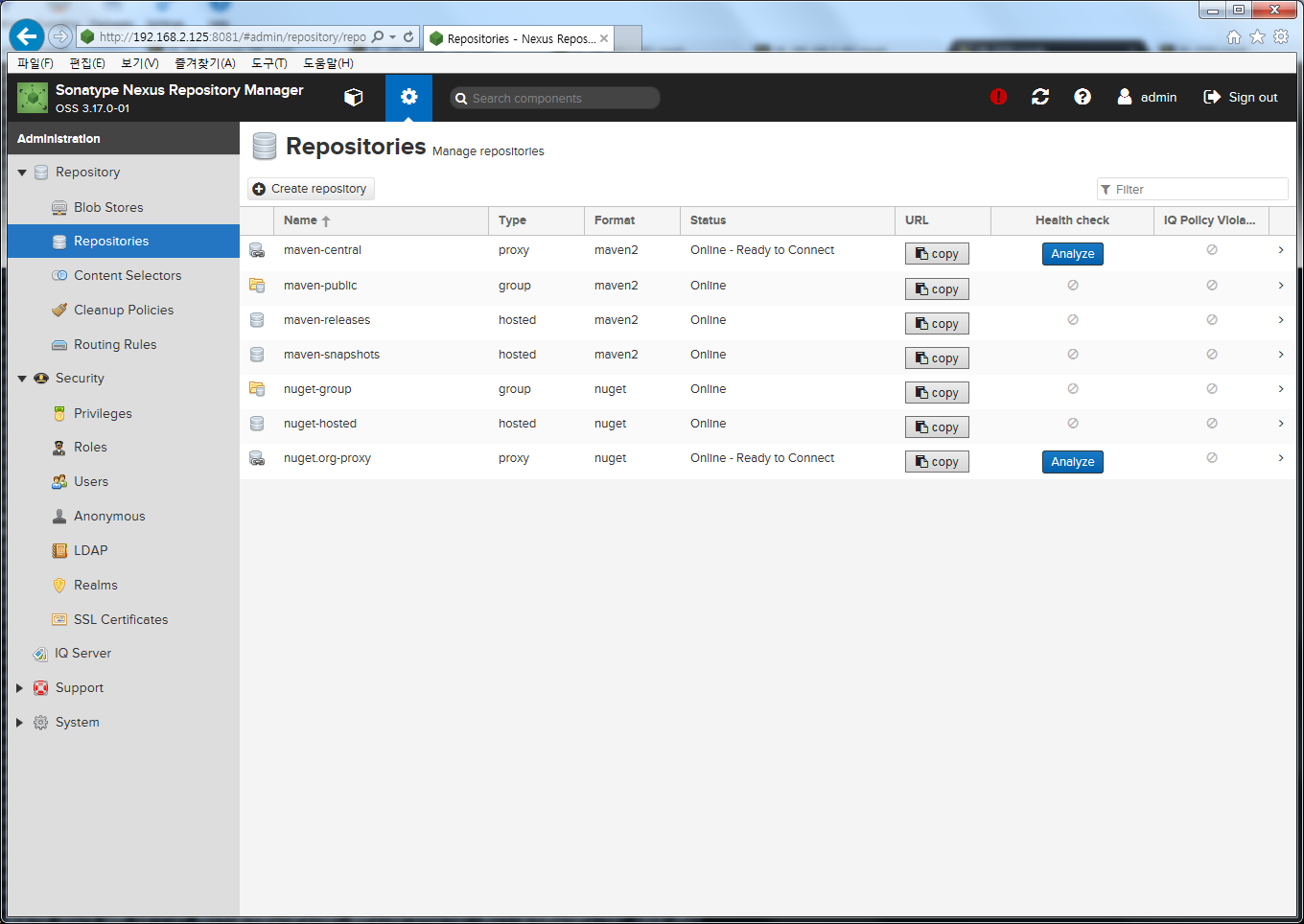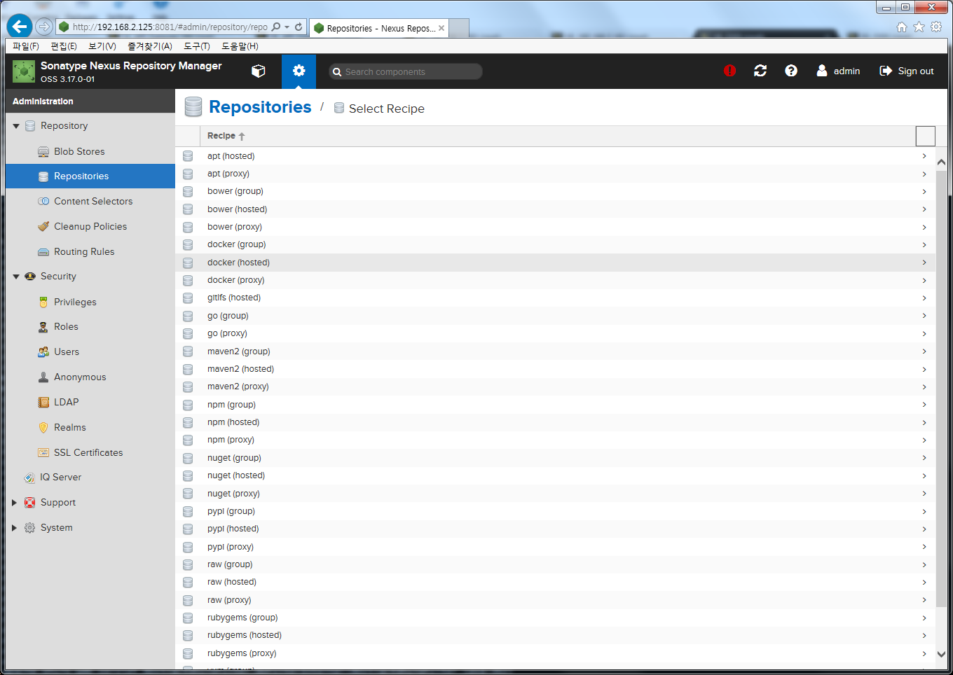 본 포스팅에서 적용한 Nexus 버전은 nexus-3.17.0-01-unix.tar 입니다.