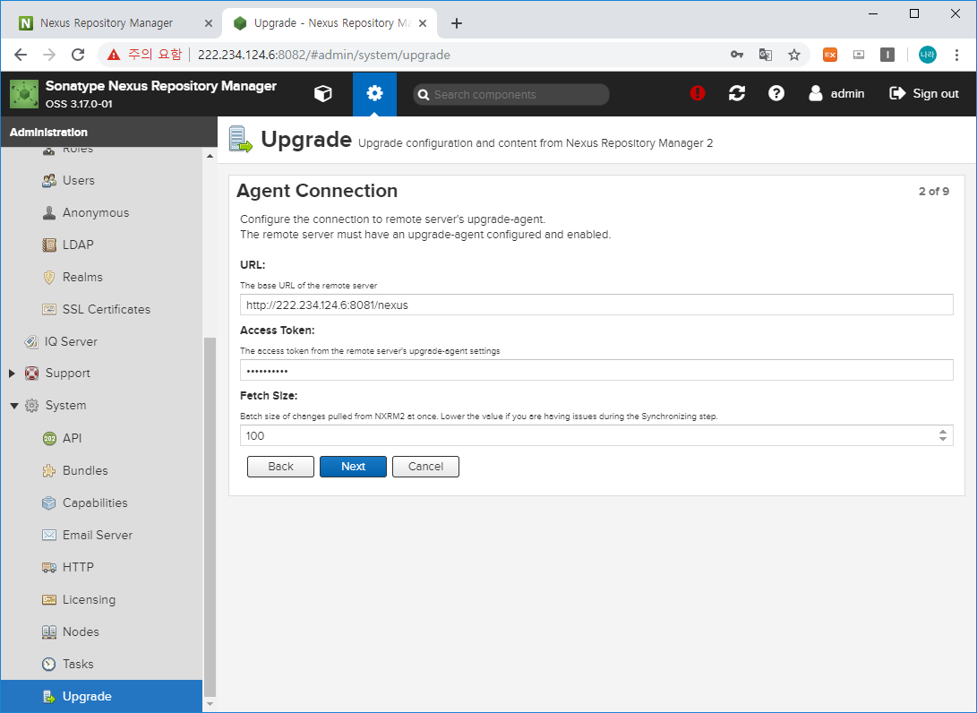 업그레이드는 Nexus3에서 Nexus2에서 생성한 토큰 기반으로 접근하는 방식을 사용합니다.