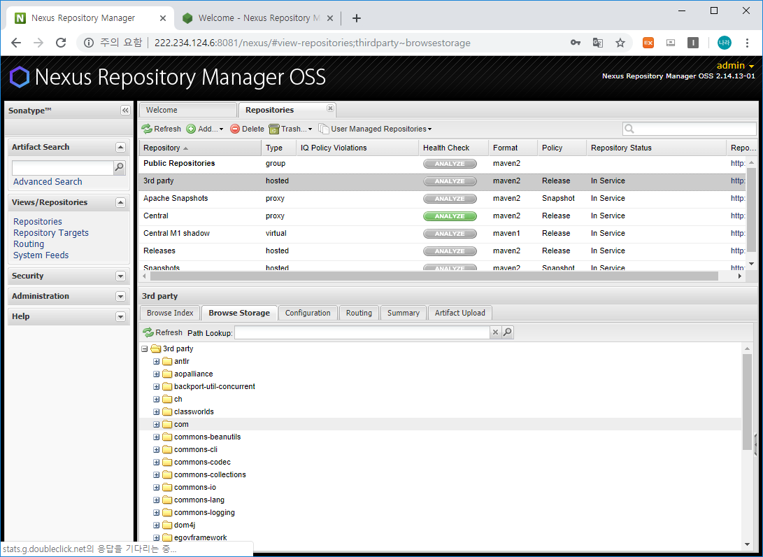 Nexus3는 접속 URL이 http://Nexus_Install_Server_IP:8082이며