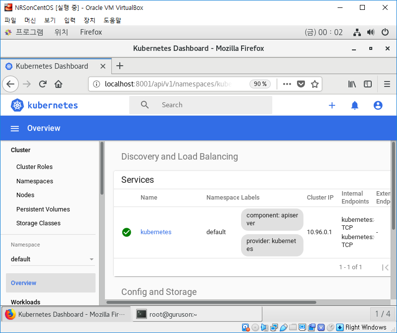 - 다음과 같이 Kubernetes dashboard가 추가되었음을 확인할 수 있습니다.