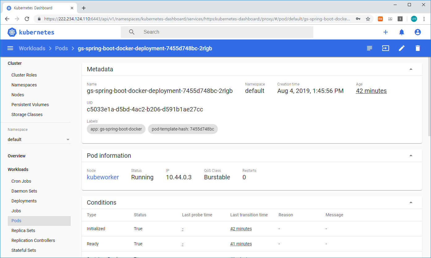 a40304c7fc04 nara0617/gs-spring-boot-docker "sh -c 'java $JAVA_O 47 minutes ago Up 47 minutes k8s_gs-spring-boot-docker_gs-spring-boot-docker-deployment-7455d748bc-2rlgb_default_c5033e1a-d5bd-4ac2-b206-d591b1ae27cc_0
