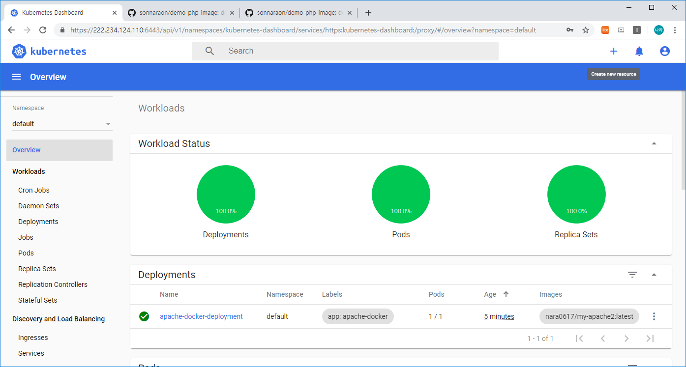 - 먼저 워크로드 => Pod 항목에서 초록색 체크가 들어와 있는지 확인