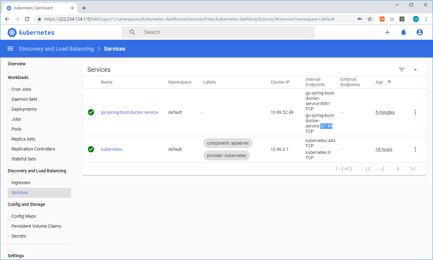 gs-spring-boot-docker-service NodePort 10.99.52.49 <none> 8081:32189/TCP 21m