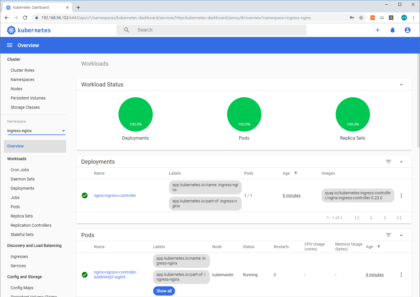 마지막으로 ingress-nginx의 Namespace 정보입니다.