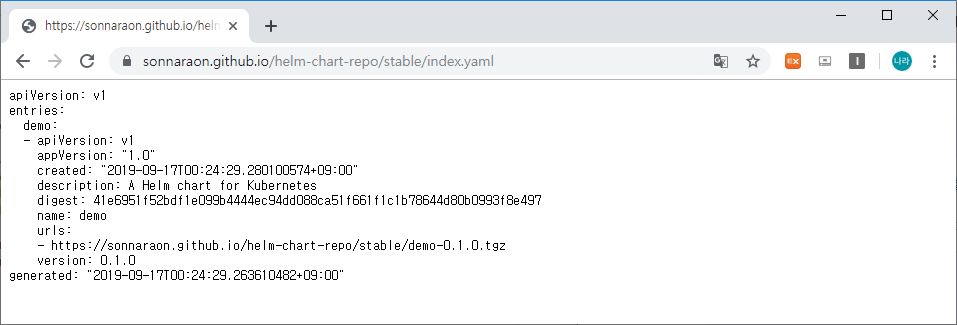 저의 경우 https://sonnaraon.github.io/helm-chart-repo/stable/index.yaml로 호출합니다.