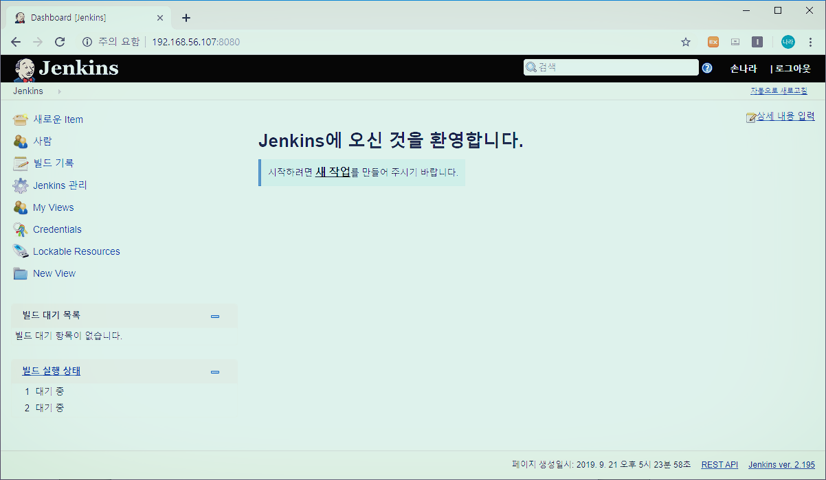 다음은 Jenkins의 메인 화면입니다.