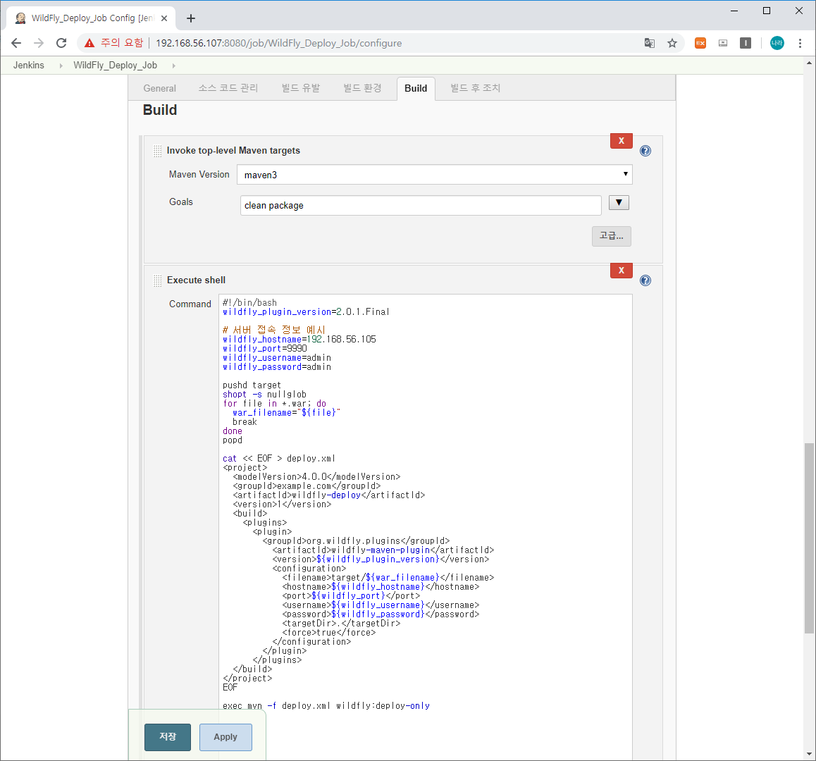 기존 WildFly_Deploy_Job의 설정이 그대로 포함되어 있으니 수정할 사항에 맞게 수정 후