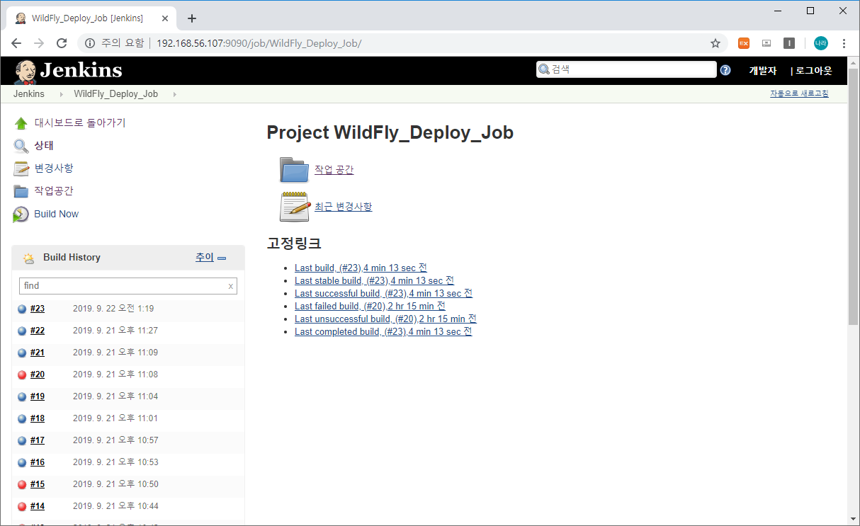 | [Jenkins] Jenkins를 활용한 WildFly CI/CD 환경 구성 (0) | 2019.09.22 |