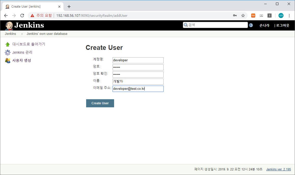 사용자 가입 방식은 직접 Jenkins에 가입하는 방식과 admin 계정으로 생성하는 방식이 있습니다.