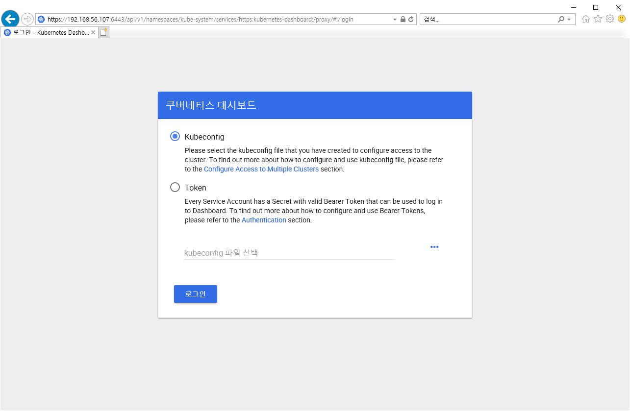 Kubernetes Dashboard에 접속하는 방법은 지난 포스팅을 참고하시기 바랍니다.
