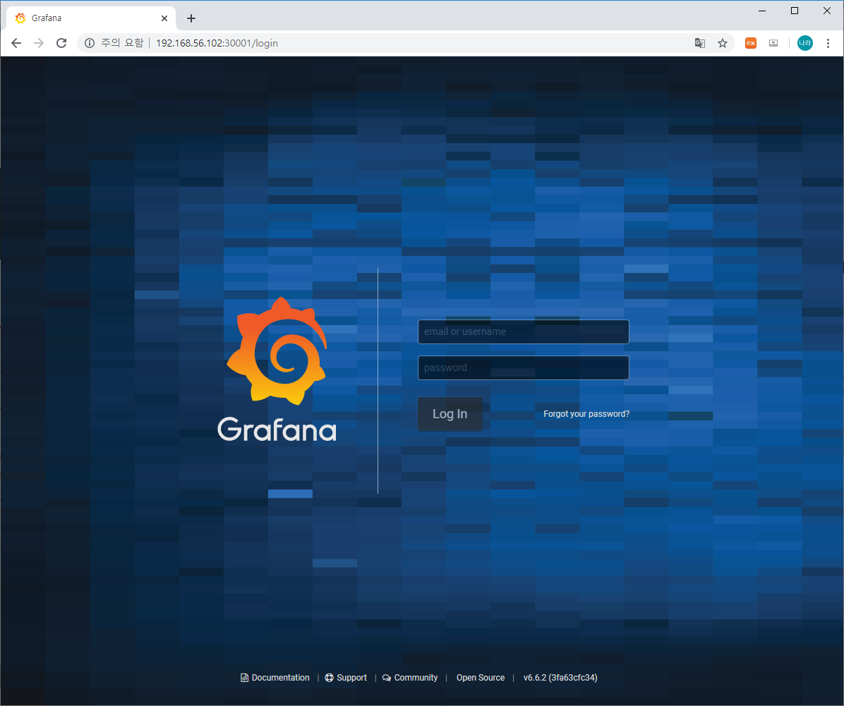 마찬가지로 NodePort로 기동되어 있어 모든 Kubernetes Cluster Node에서 접근이 가능하며, 30002 포트로 접근합니다.