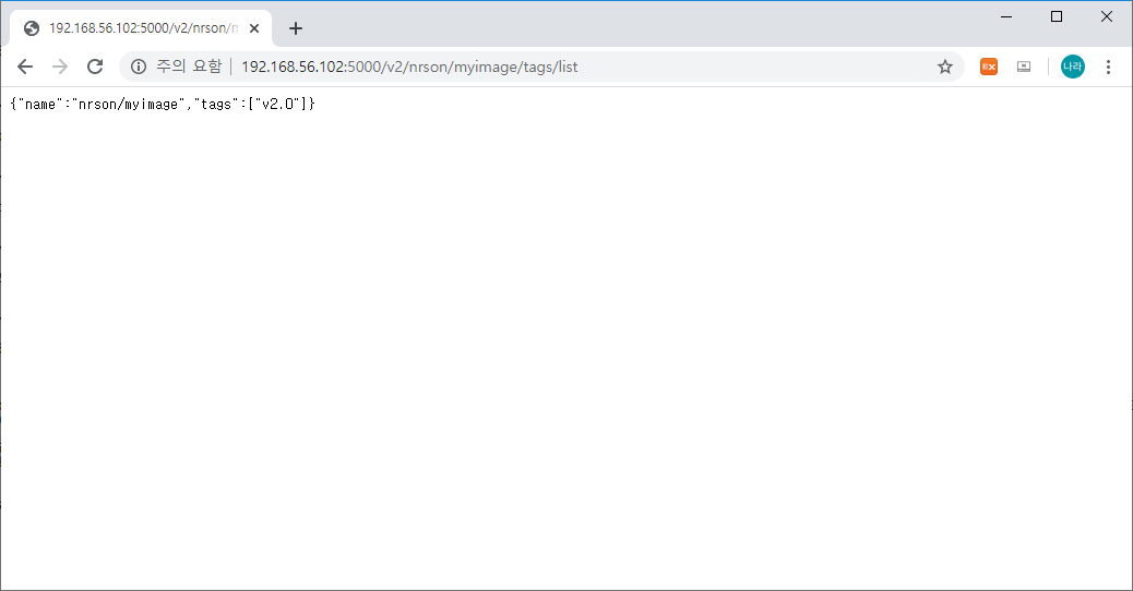자 위와 같이 두개의 nrson images가 생성되었다. 앞서 기동한 registry에 Push 하기위해 Docker dadmon.json을 아래와 같이 적용 후 재기동한다.