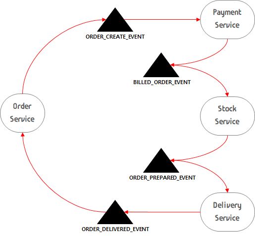 각 서비스는 자신의 트랜잭션이 성공적으로 완료되면 다음 서비스를 호출하기 위한 Trigger를 동작시킨다. 이 또한 하나의 이벤트 형태로 동작하며, 다음 서비스를 동작하게 하는 역할을 담당한다.