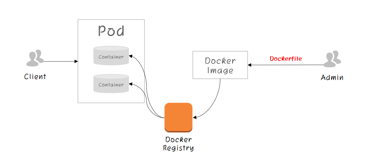 Admin은 Dockerfile에 정의된 태그를 기반으로 Docker Image를 생성하며, Docker Image는 실제 Container 서비스로 동작하게 된다.