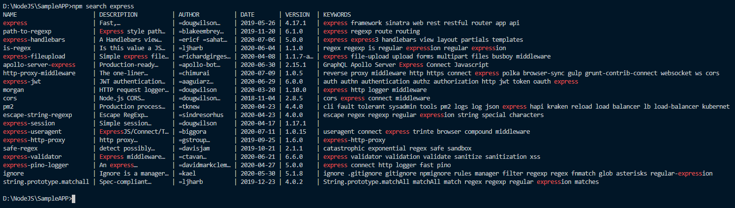 D:\NodeJS\SampleAPP>npm install --save-prod express