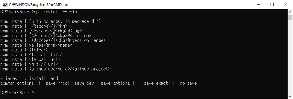 npm install과 함께 많이 사용되는 몇가지 옵션에 대해 살펴보도록 하자.