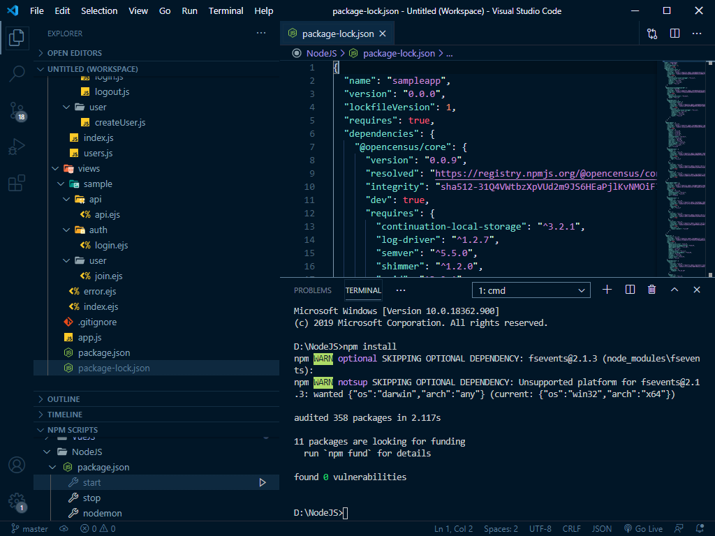 다음은 npm install이 동작된 이후 생성된 package-lock.json 파일이다.