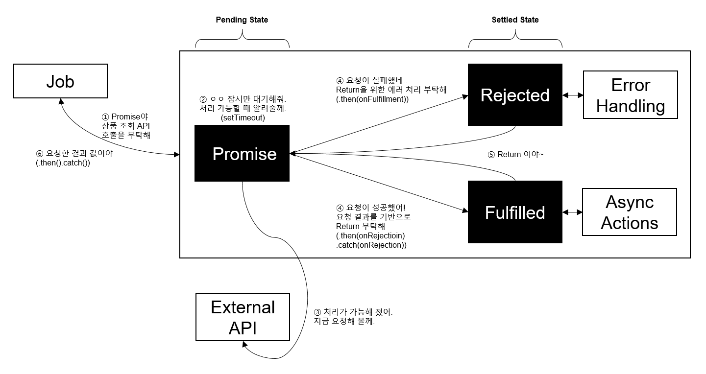 - Settled : Promise가 약속한 내용이 처리가 완료된 상태 (Fulfilled 또는 Rejected가 호출 완료된 상태)