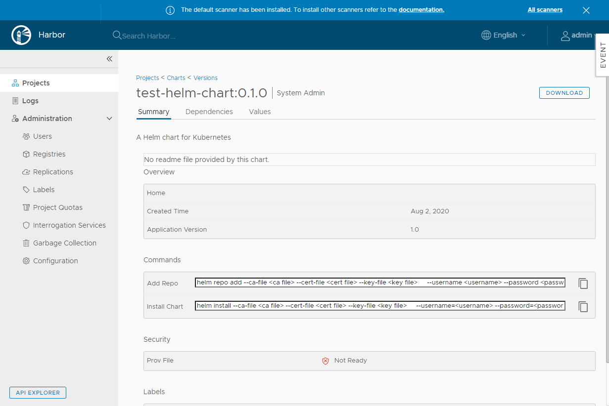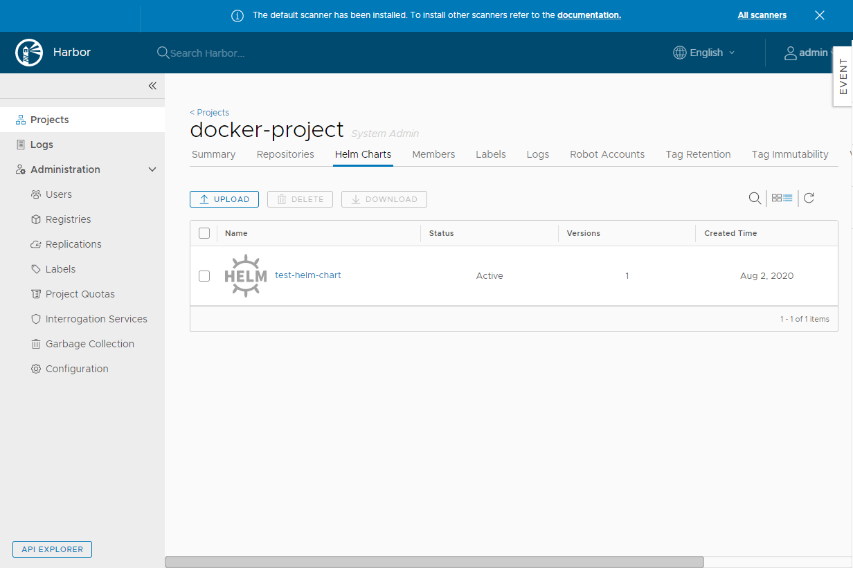 위와 같이 chart가 추가되면 다음과 같이 Harbor 대시보드에서 확인할 수 있다.