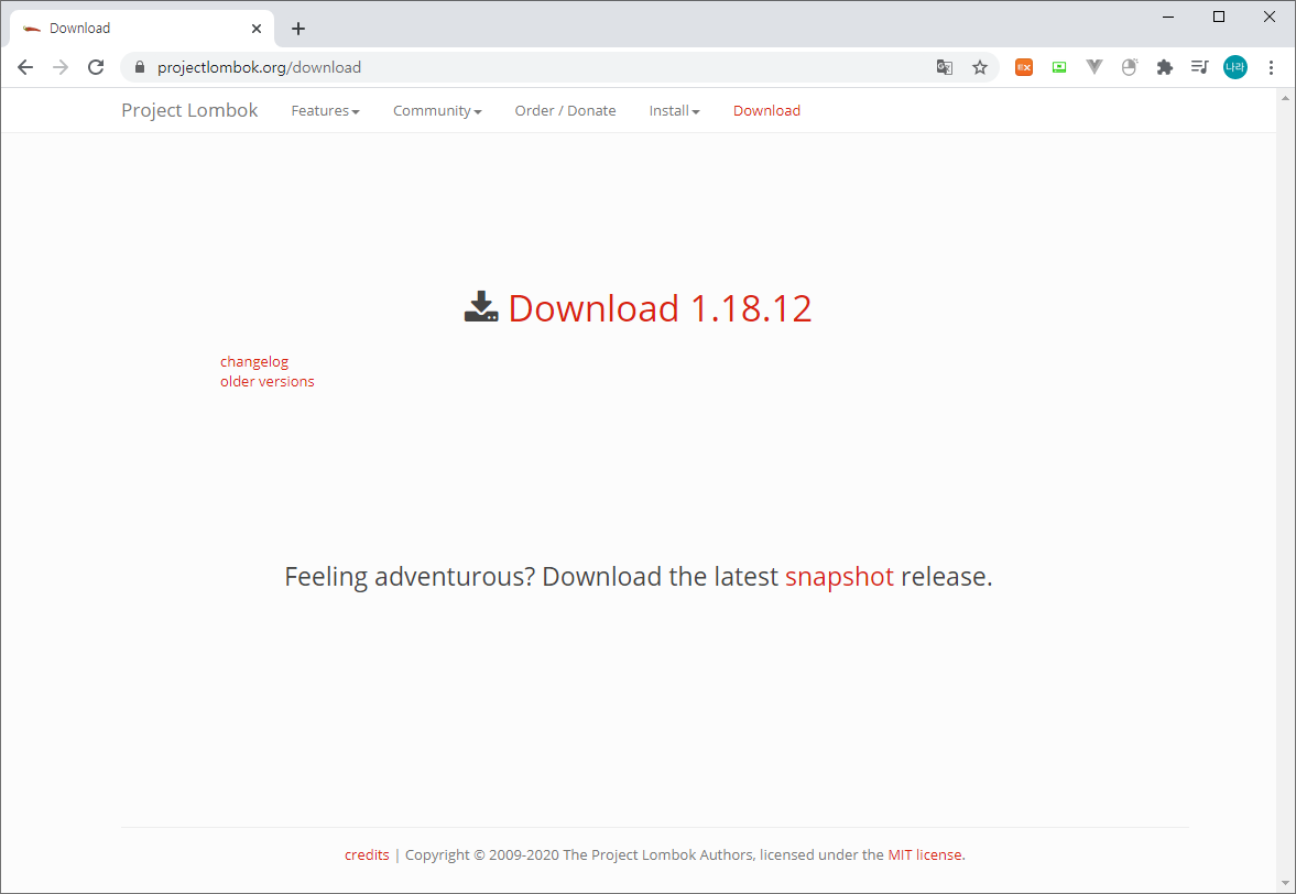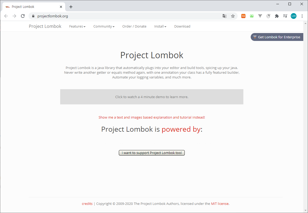 Lombok 공식 사이트에 접속하면 아래와 같이 접속해 보자.