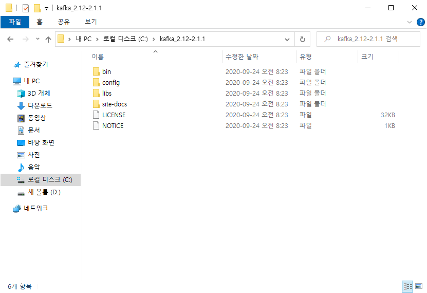 Kafka를 관리할 특정 디렉토리에 압축을 해제하면 다음과 같은 구조를 갖는다.
