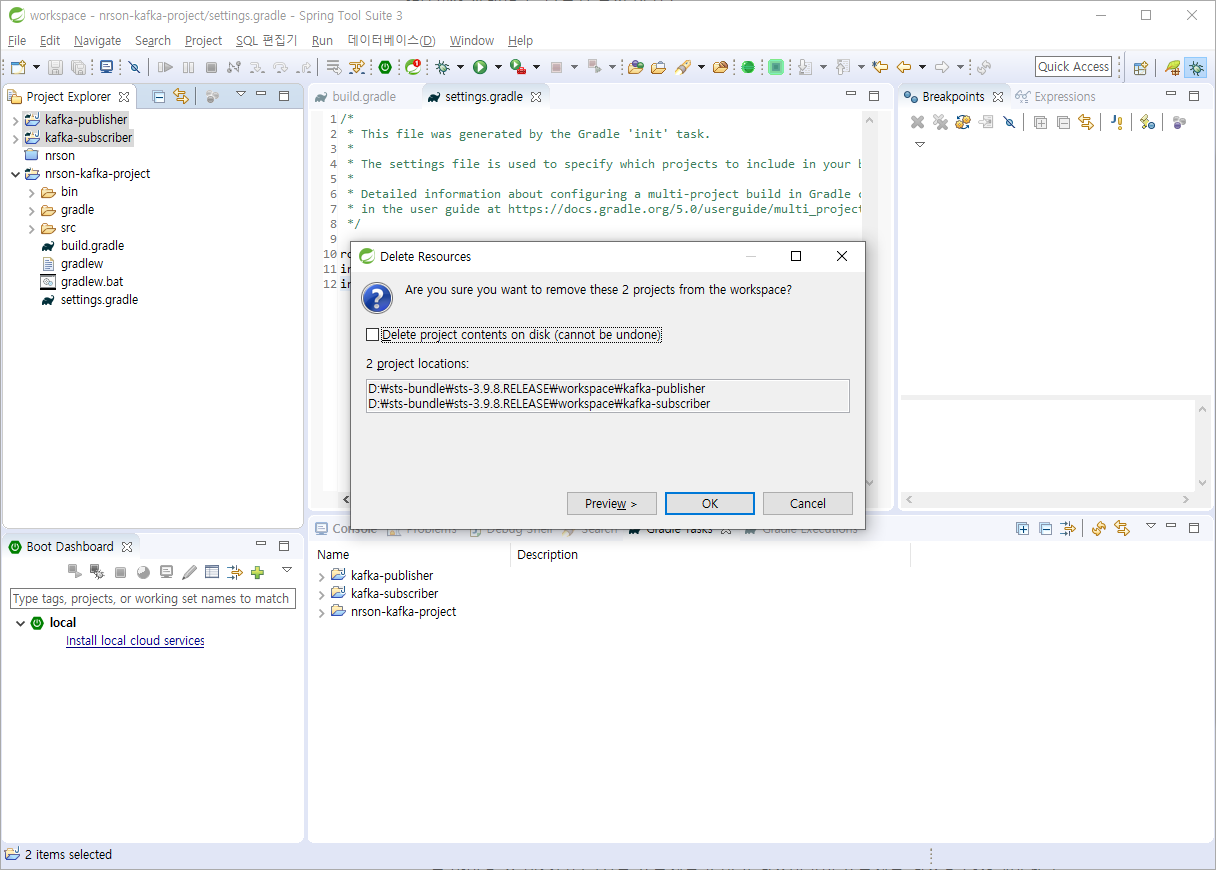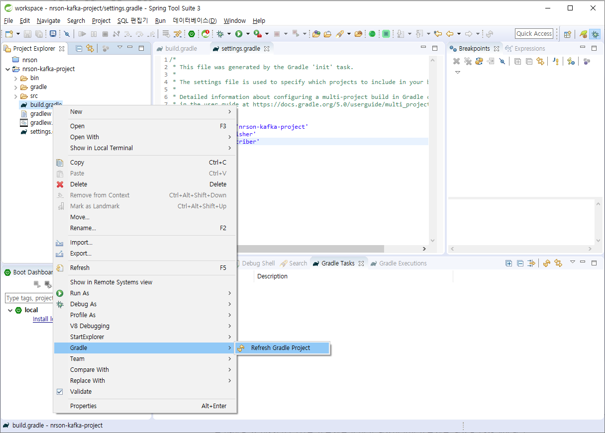 > rootProject 하위로 kafka-publisher / kafka-subscriber Project 복사