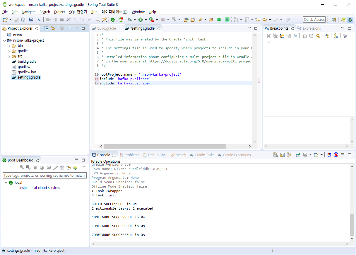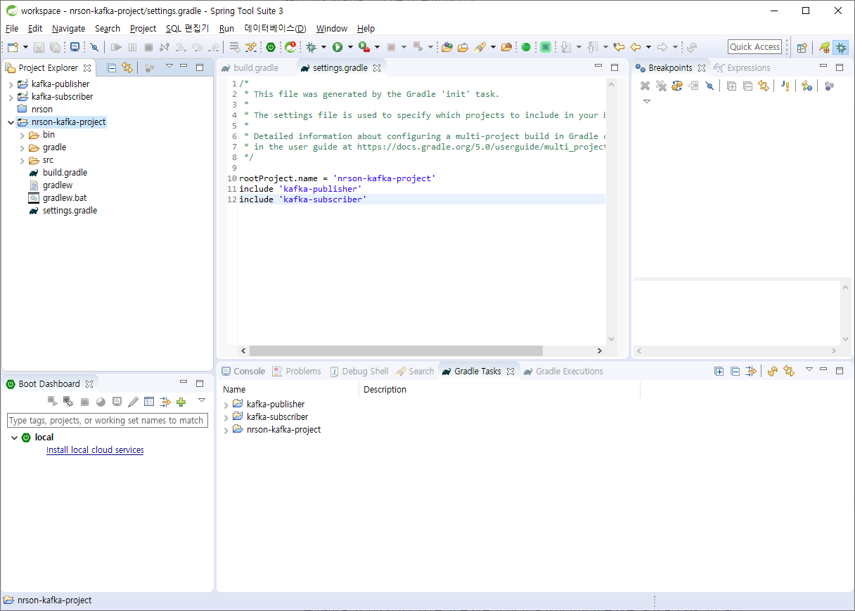 본격적인 Pub/Sub 구조의 애플리케이션 개발에 앞서 Gradle Project의 settings.gradle을 활용한 include project 생성 방법에 대해 먼저 살펴보도록 하자.