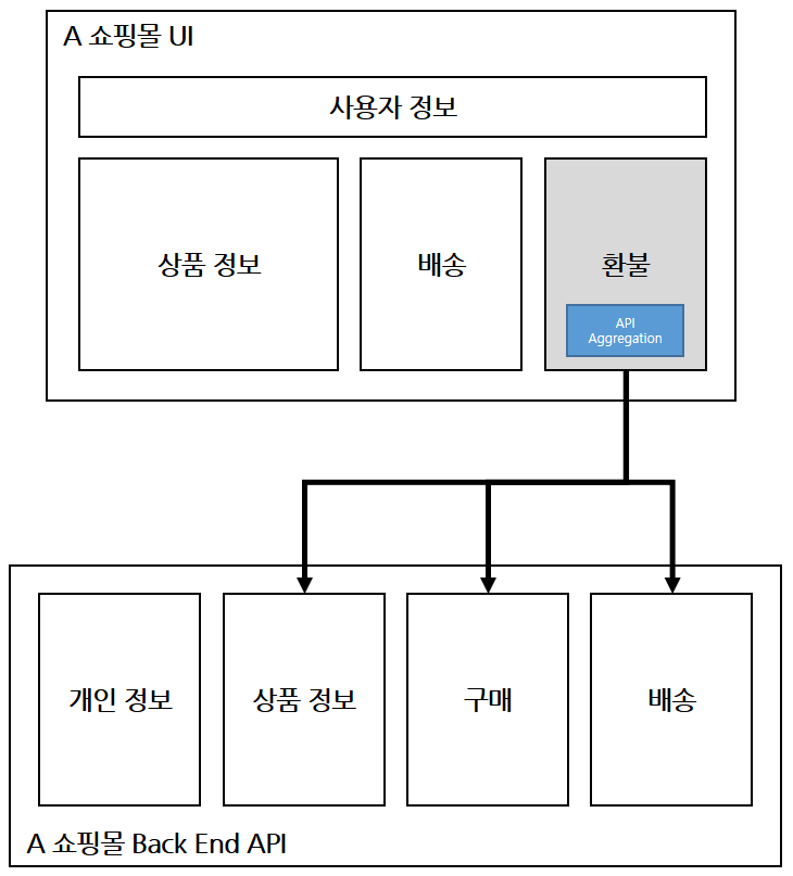이와 같은 문제를 해결하고자 Aggregator Service를 별도로 개발하여 구성하는 방법도 제시할 수 있다.