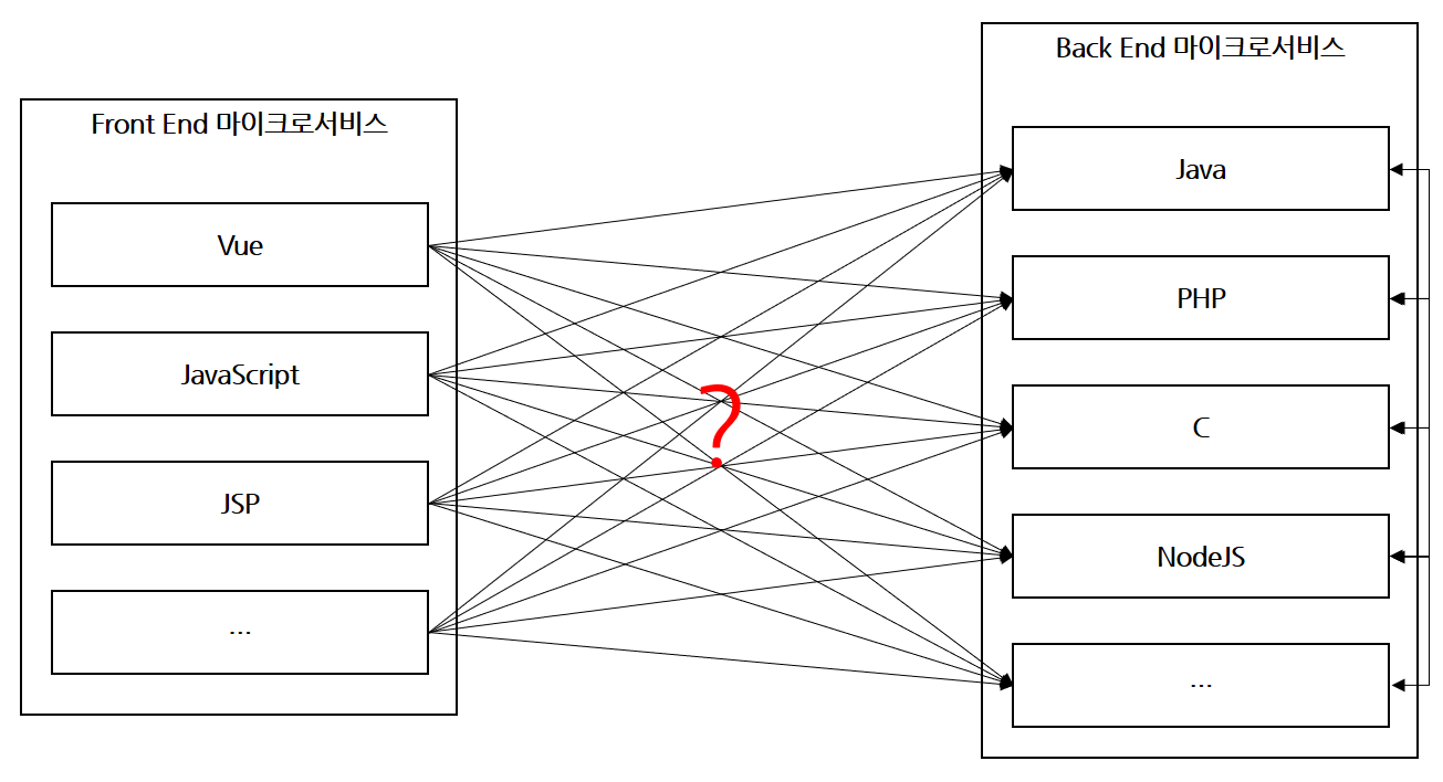 다양한 언어의 마이크로서비스 간 또는 다양한 형태의 클라이언트의 요청은 "하나의 비즈니스 로직에 하나의 api를 호출하기도 하지만, 두 개 또는 수 개 이상의 api를 동시에 호출하기도 한다."