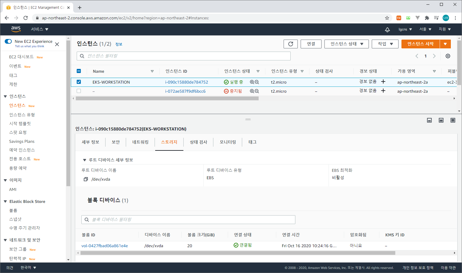 다음으로 동일 VPC 대역에 존재하는 Workstation EC2 Server를 구성한다.