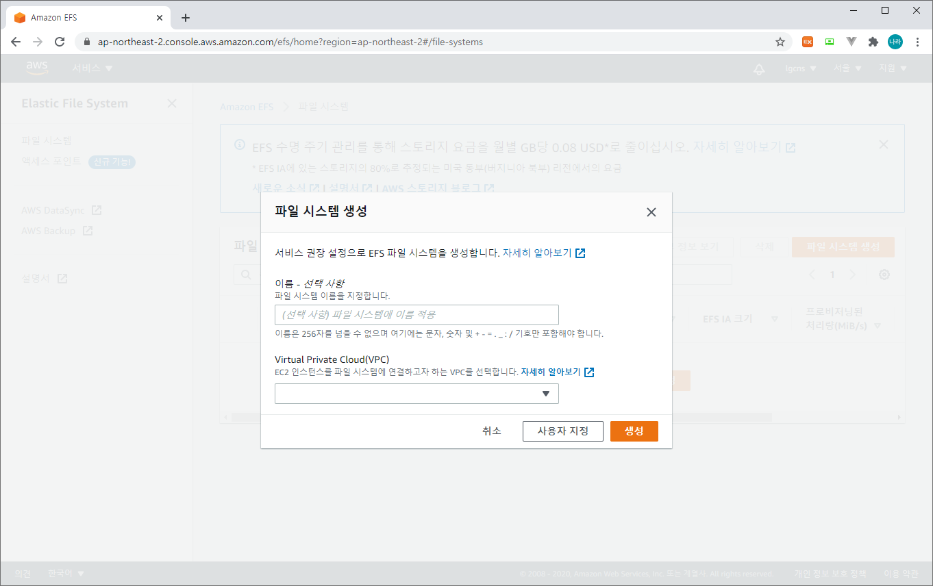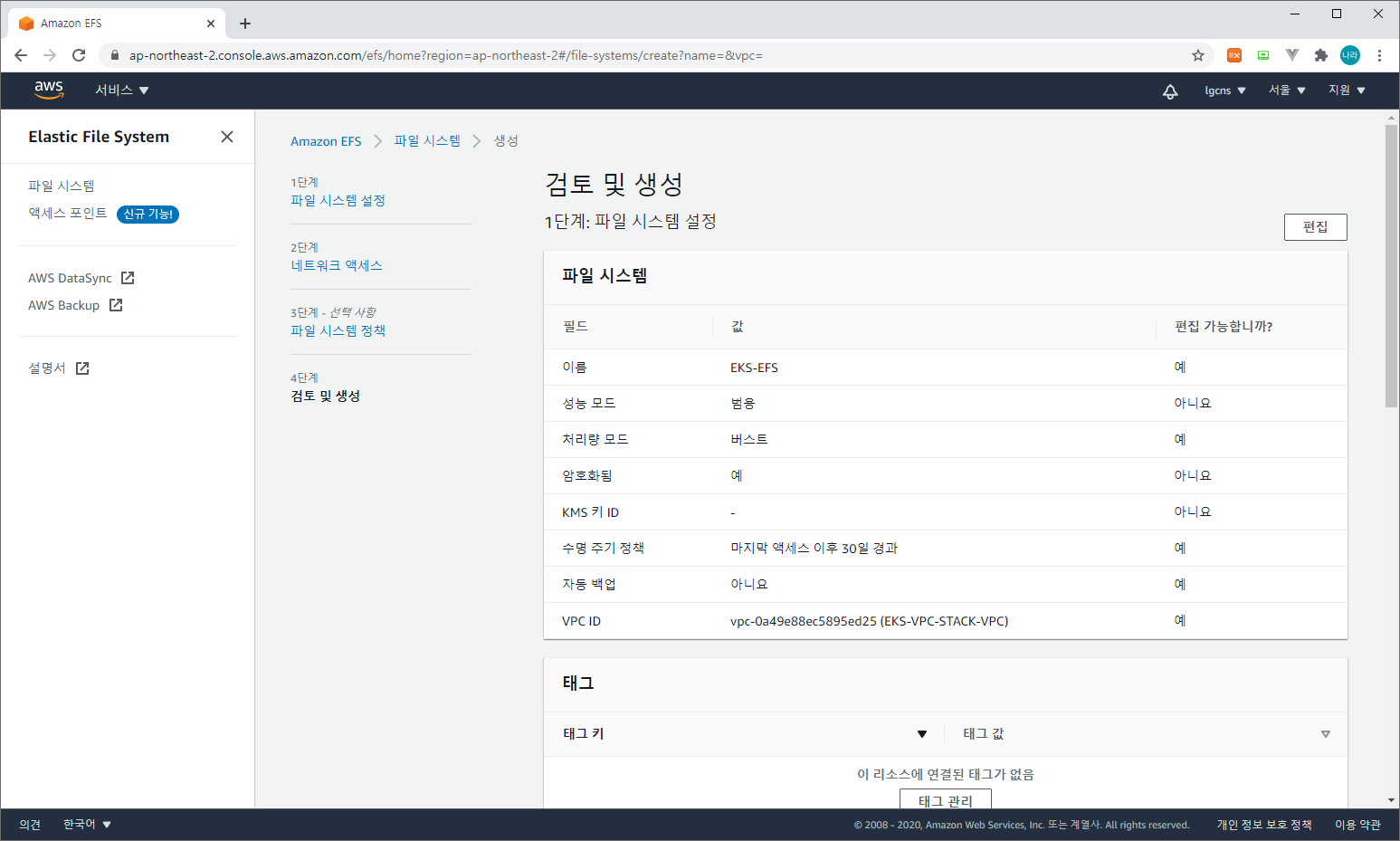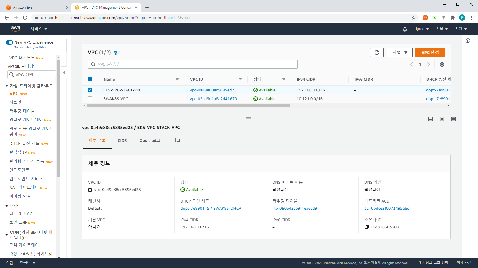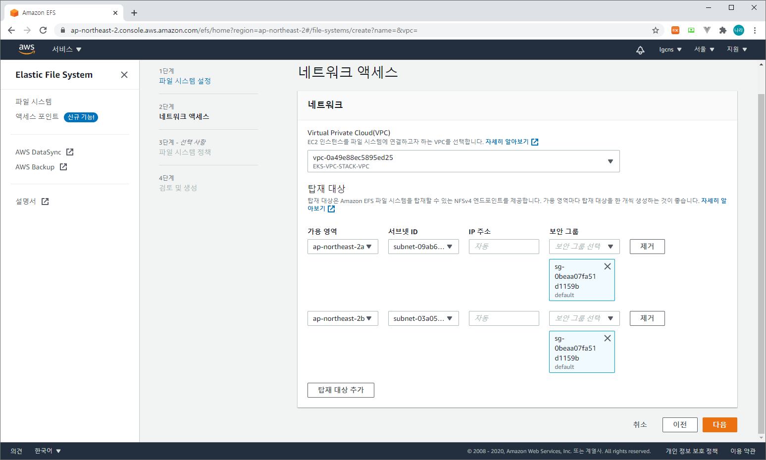 먼저 EKS 구성을 위한 기반 VPC Network를 구성한다.