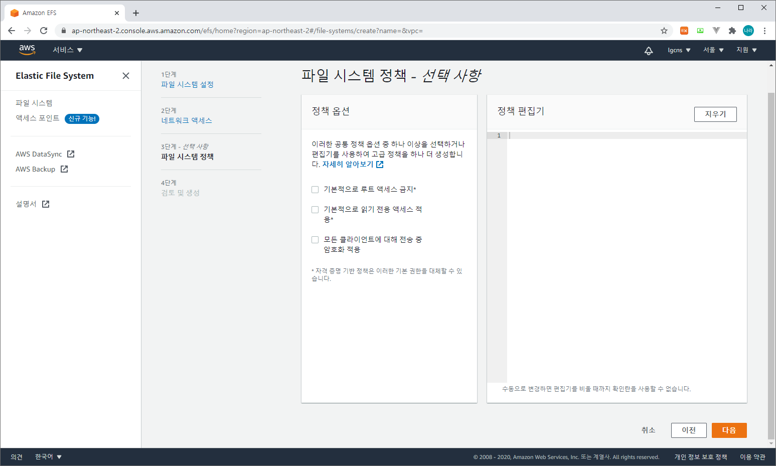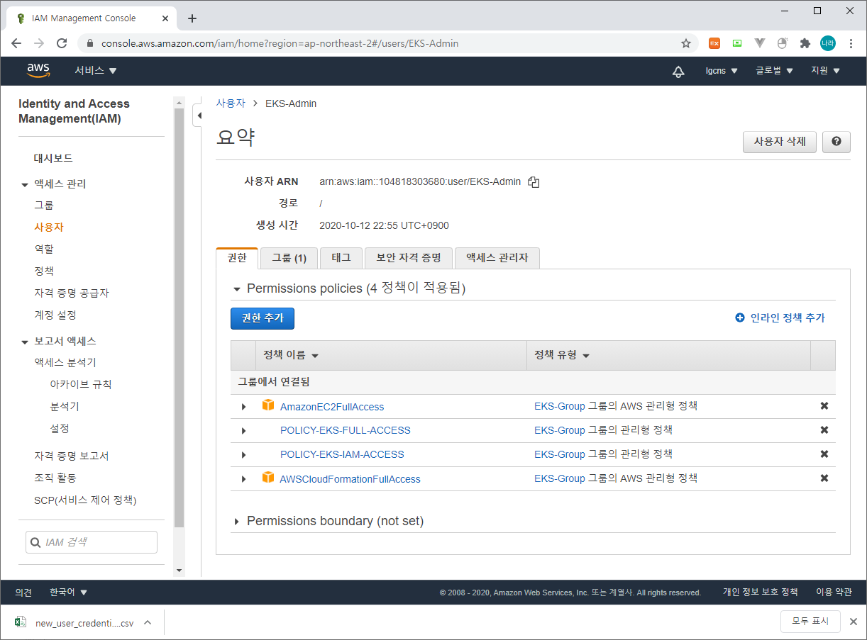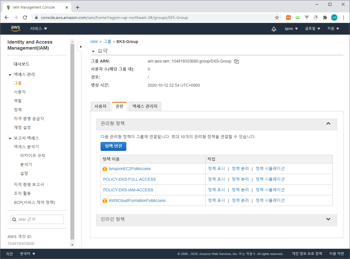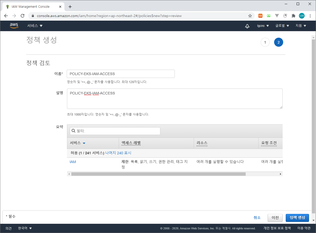 다음으로 eks iam과 access를 위한 정책을 추가한다.