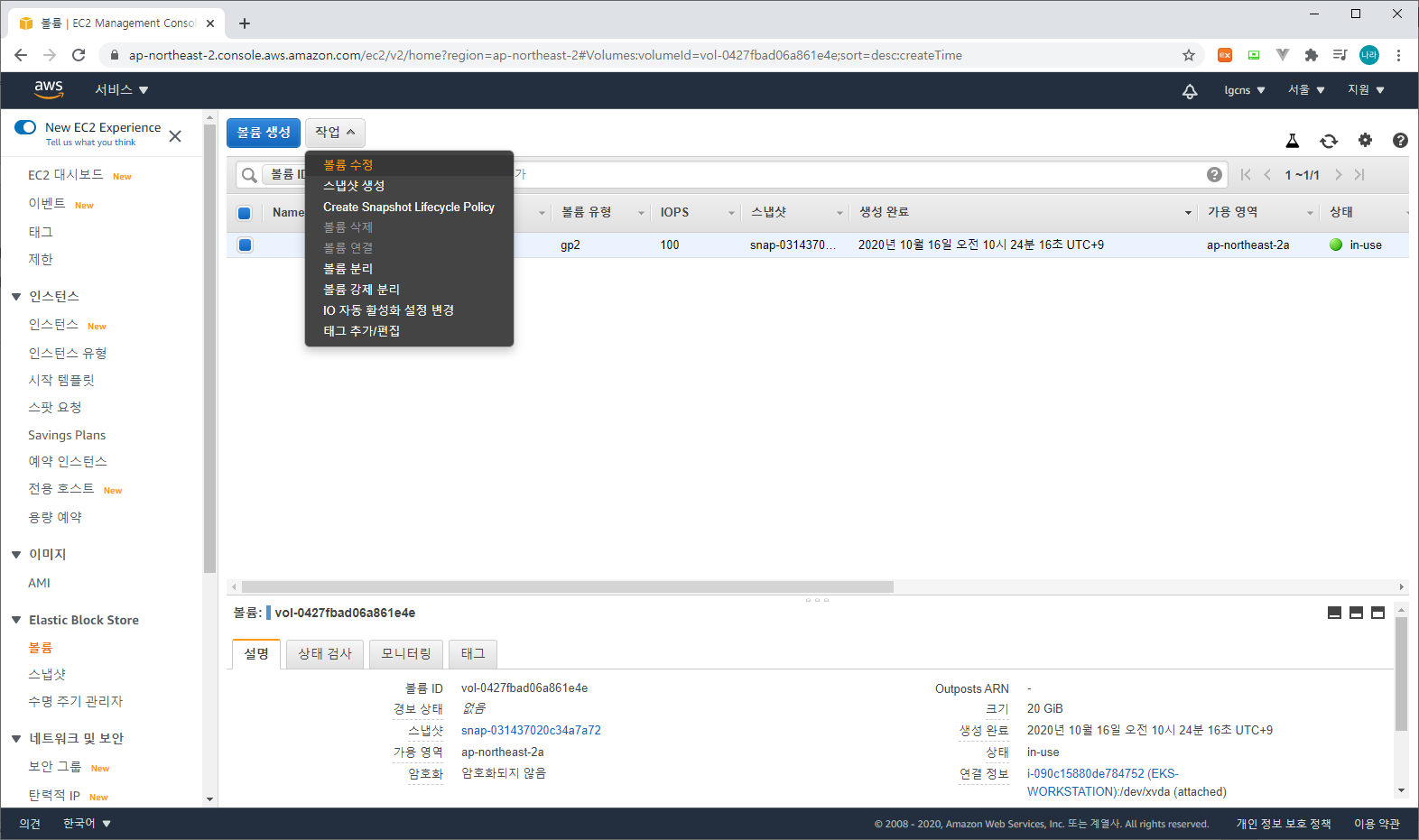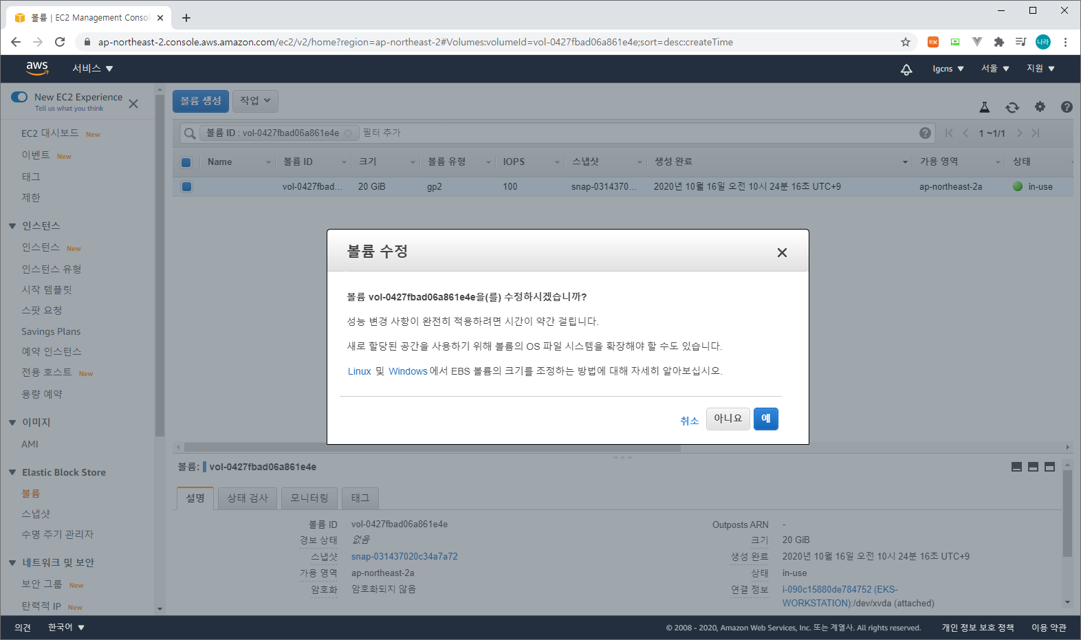 따라서 간단히 EC2의 디스크 증설이 필요한 경우 어떻게 조치하는지 살펴보고 넘어가도록 하자.