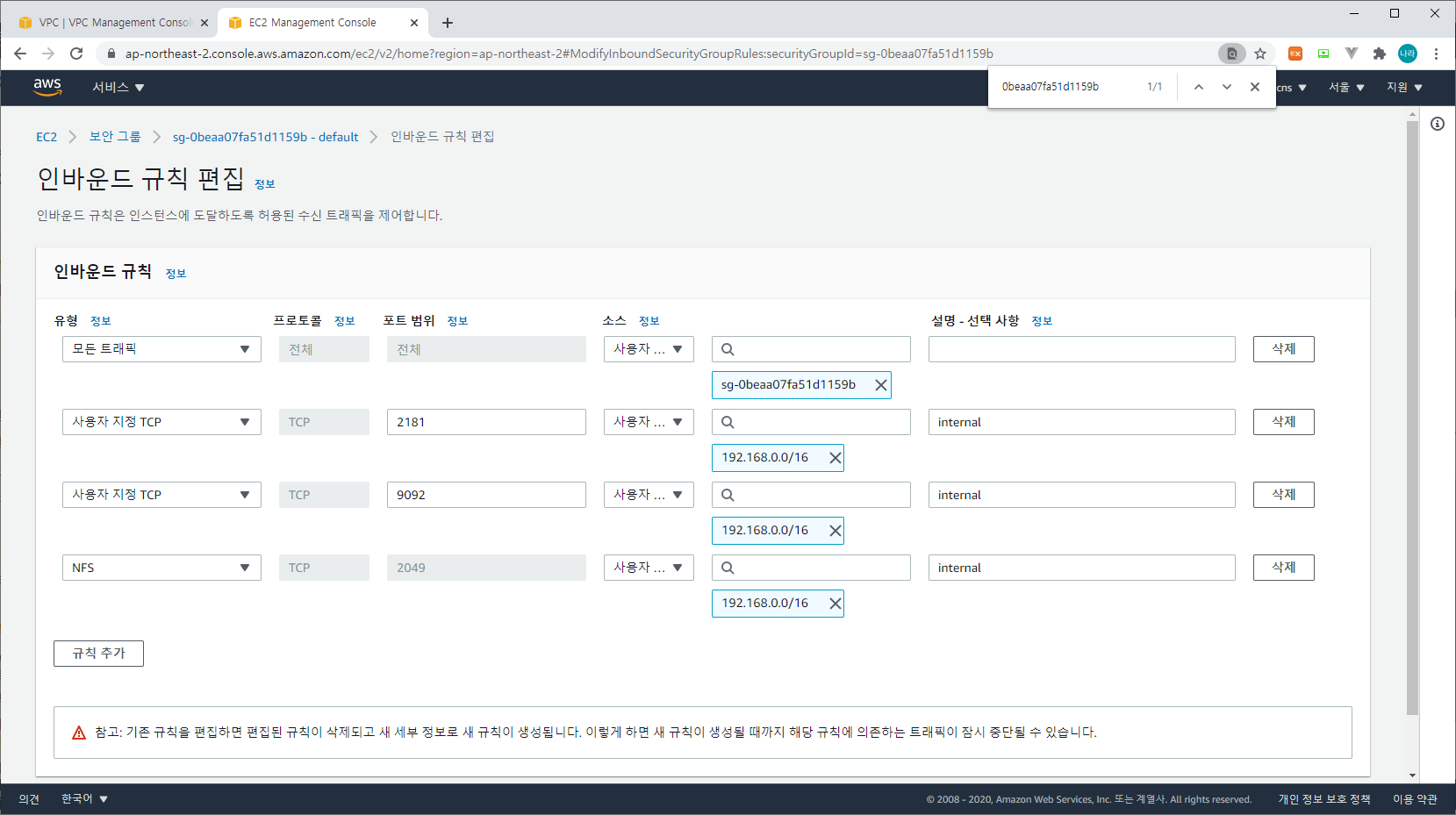 EKS는 다음과 같은 보안그룹 권고사항을 요구한다.